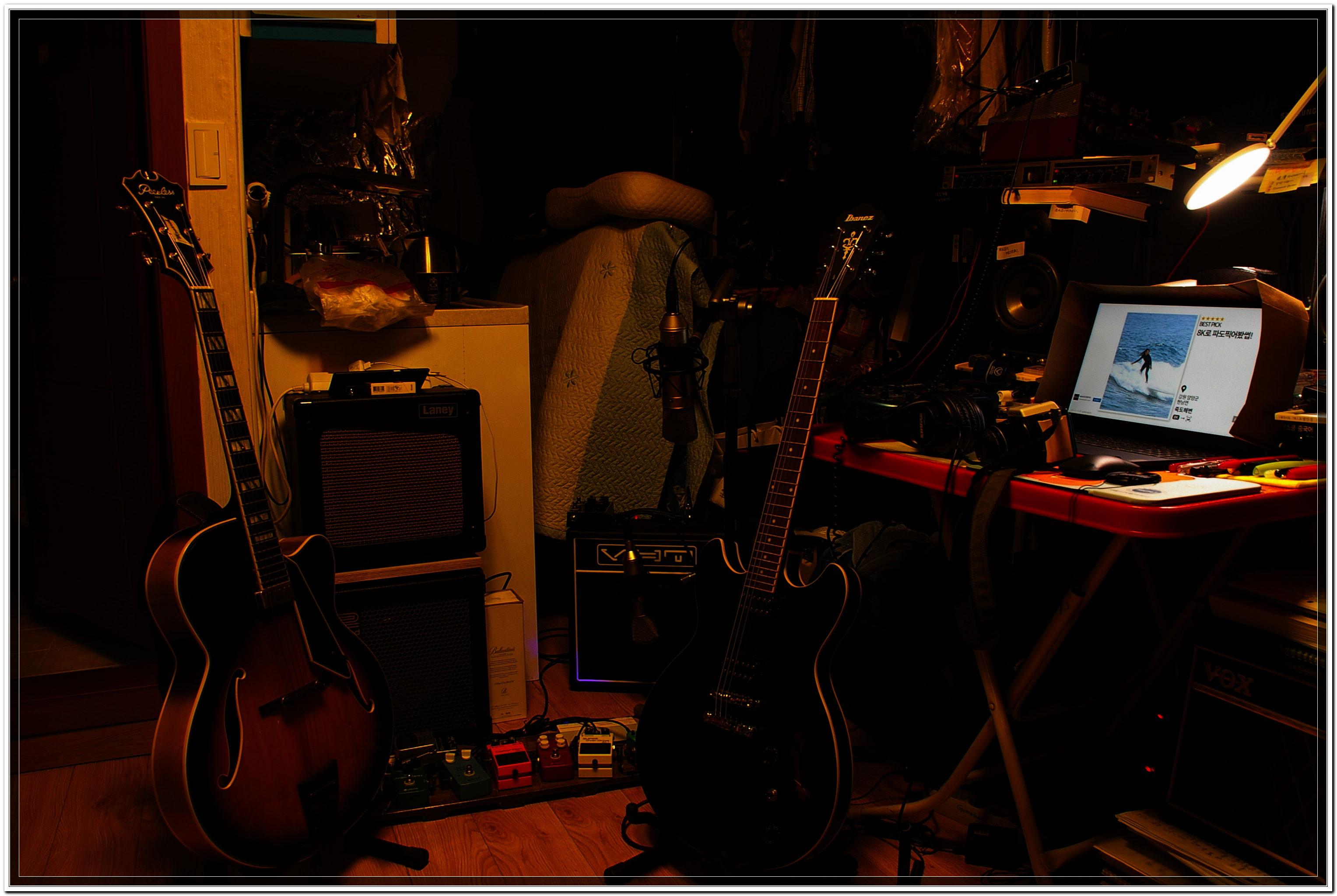밤에는 앰프 다 치우고 이런 모습이 돼.