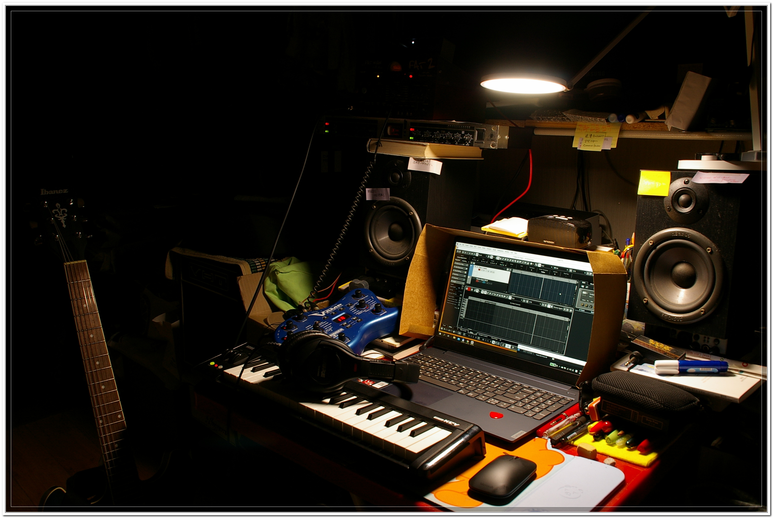 낮에는 기타에 페달 이펙터 물려서 작게 소리 내며