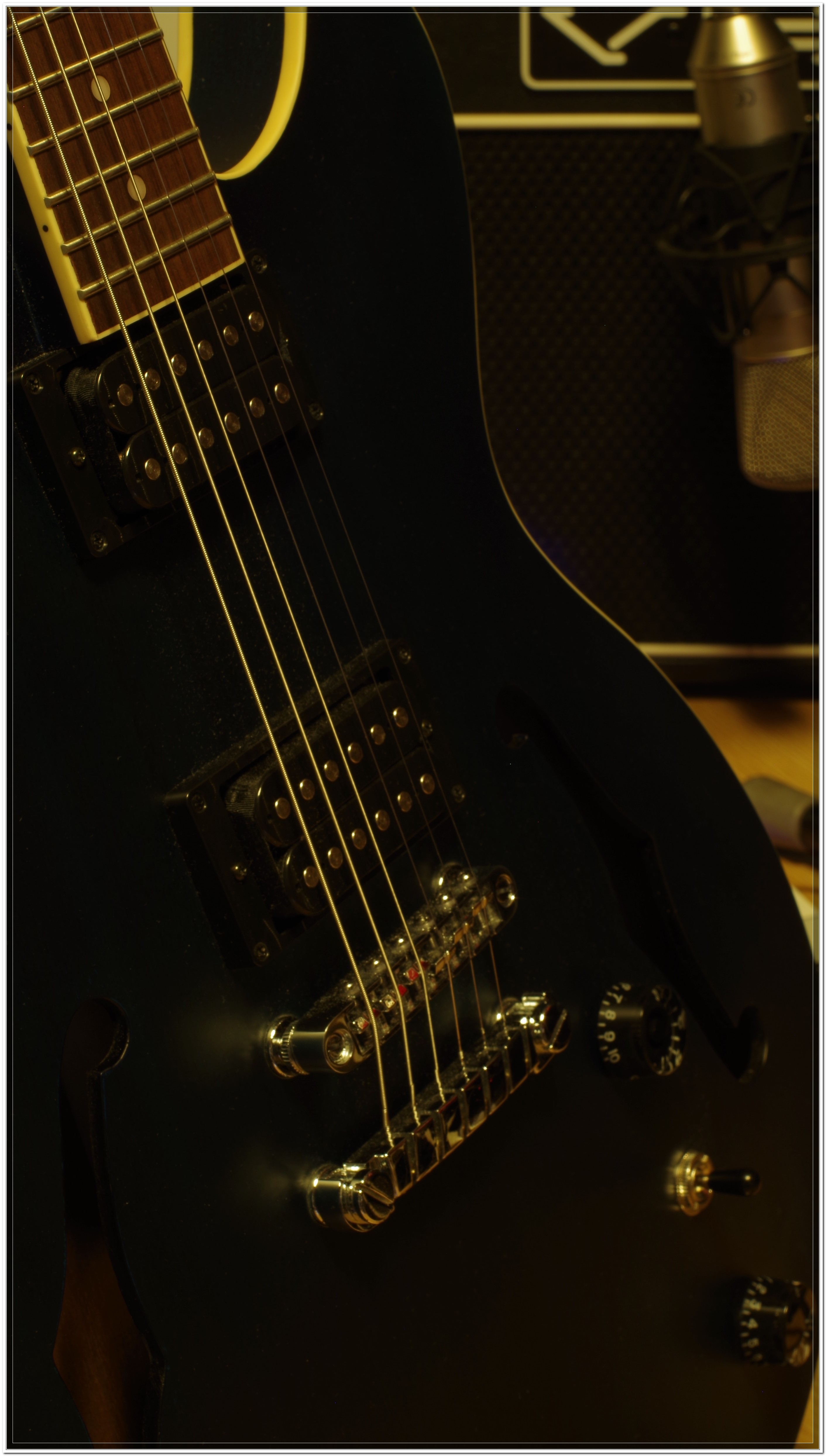 헤드폰 쓰고 기타 치면서 마이크를 움직여 보면