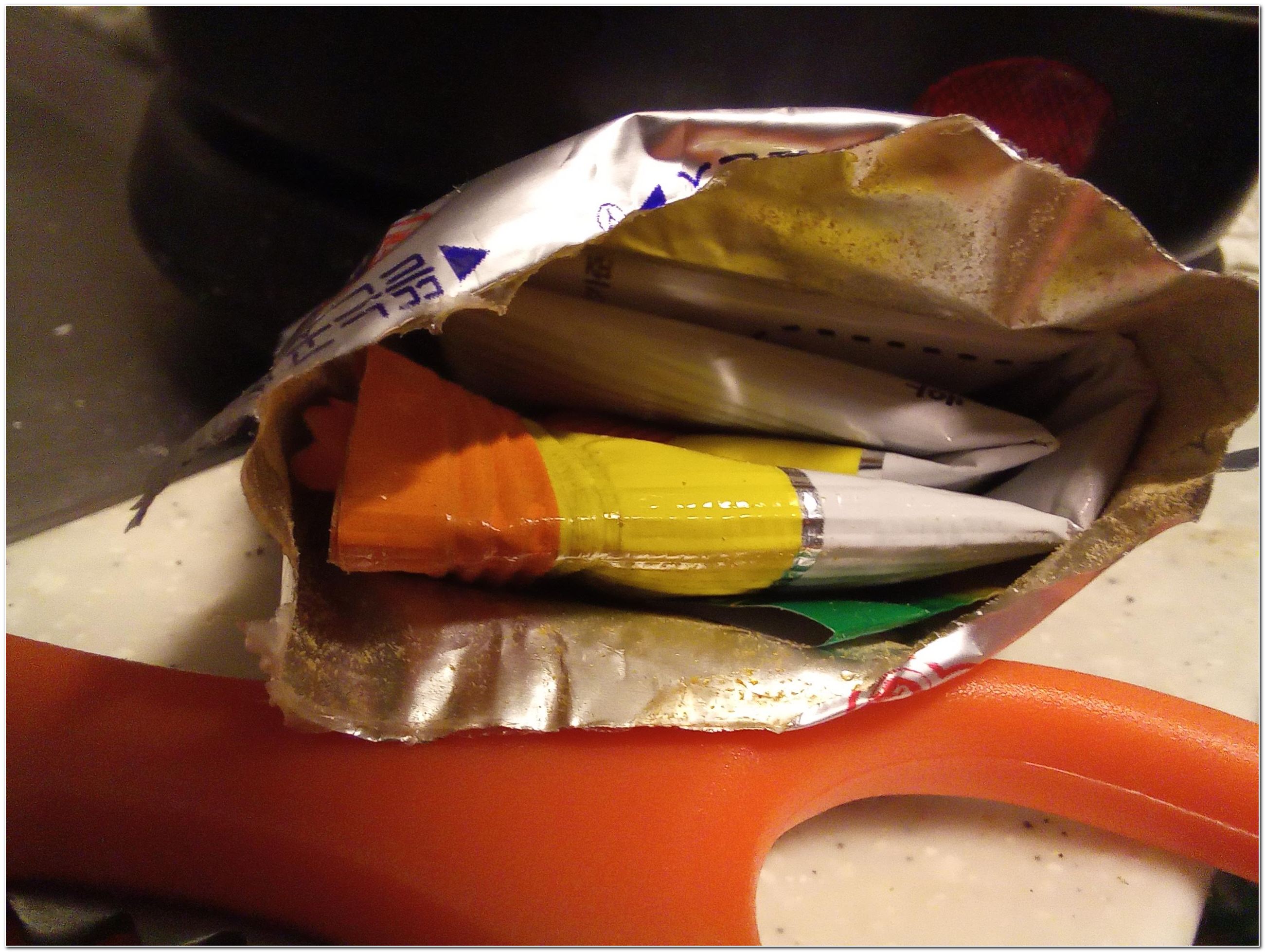 ▶라면 끓일 때 나오는 비닐봉지는 아래 사진처럼 깔끔하게 정리하자.