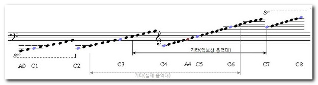 기타는 저음이 E2(악보에 표기할 때는 한 옥타브 올려서 E3로 적어요), 첼로는 저음이 C2.