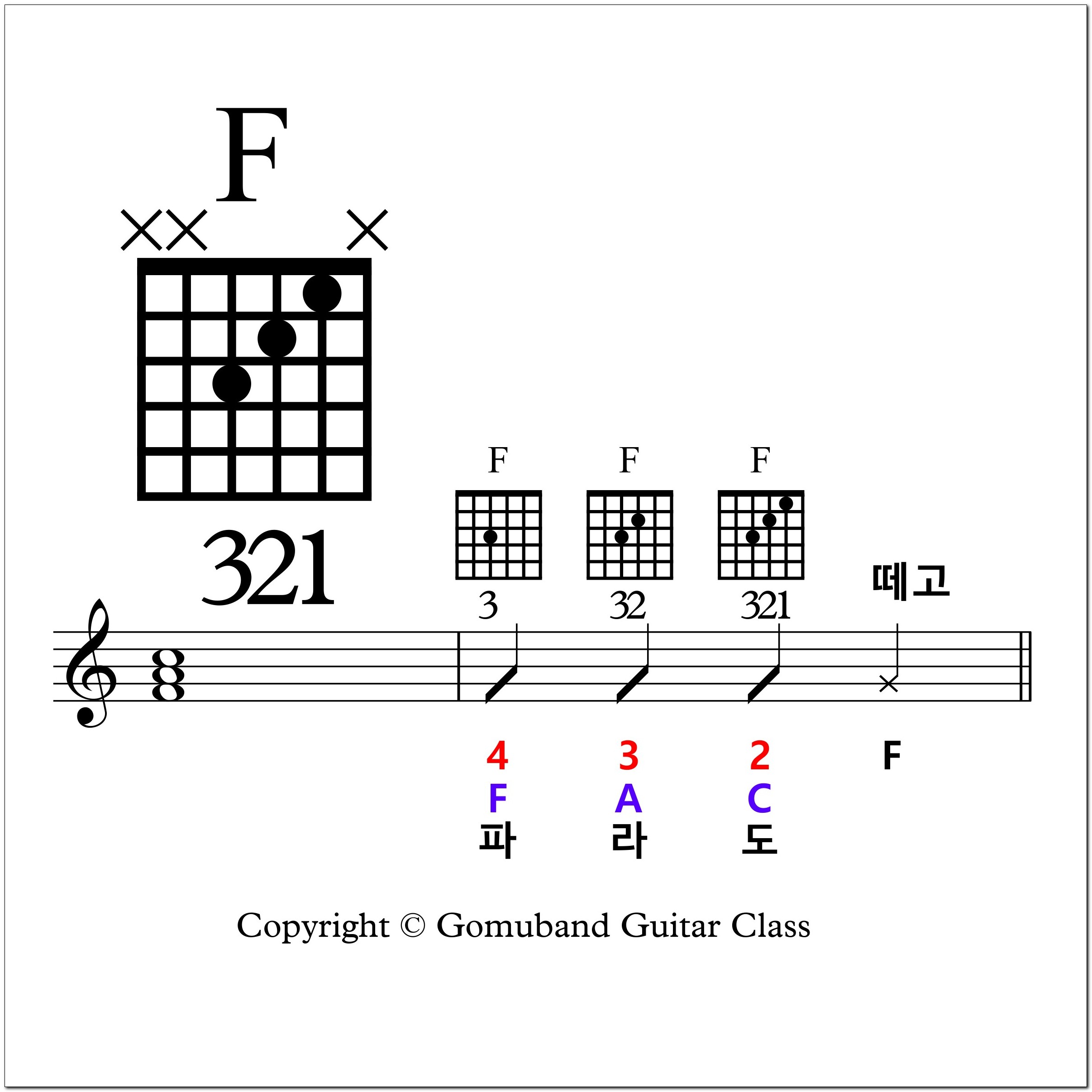 지난 글에서 C, G 코드를 배웠으니 오늘은 F 코드까지 연결하는 연습을 해야죠.