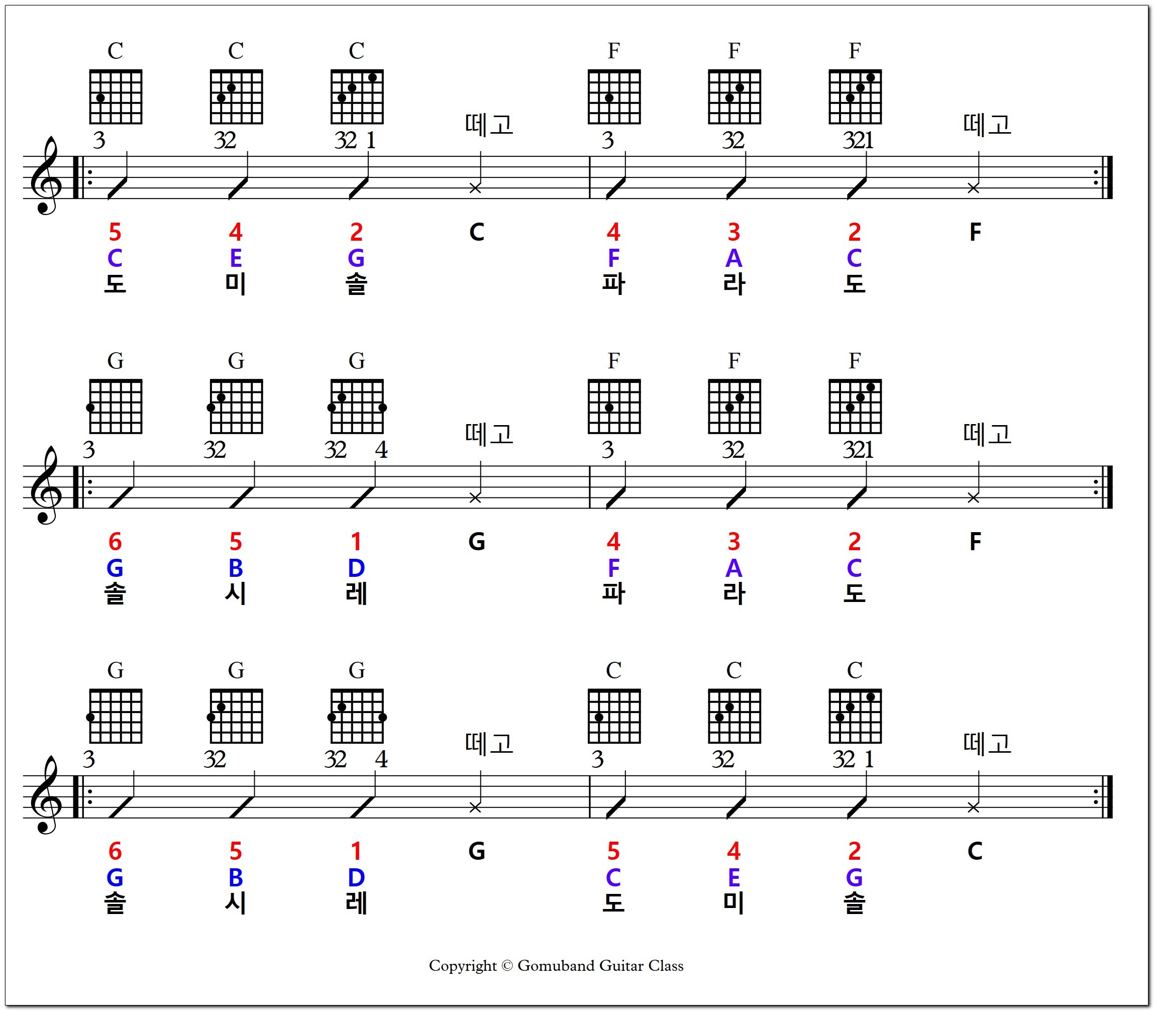 C, F, G 나오는 노래를 찾아서 같은 방법으로 노래하며 연습하세요...^^