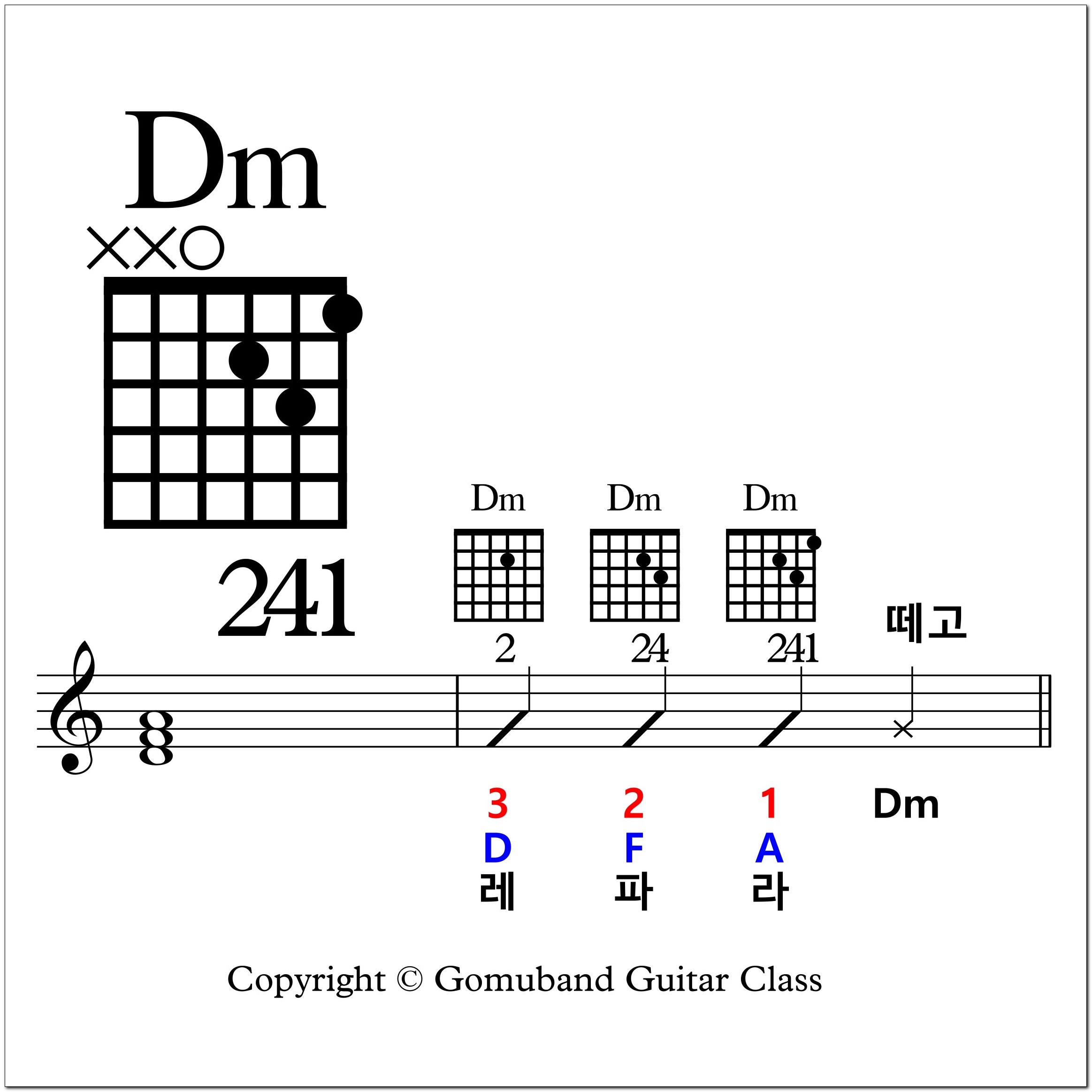 자! 이제 Dm 코드가 완성되었습니다.