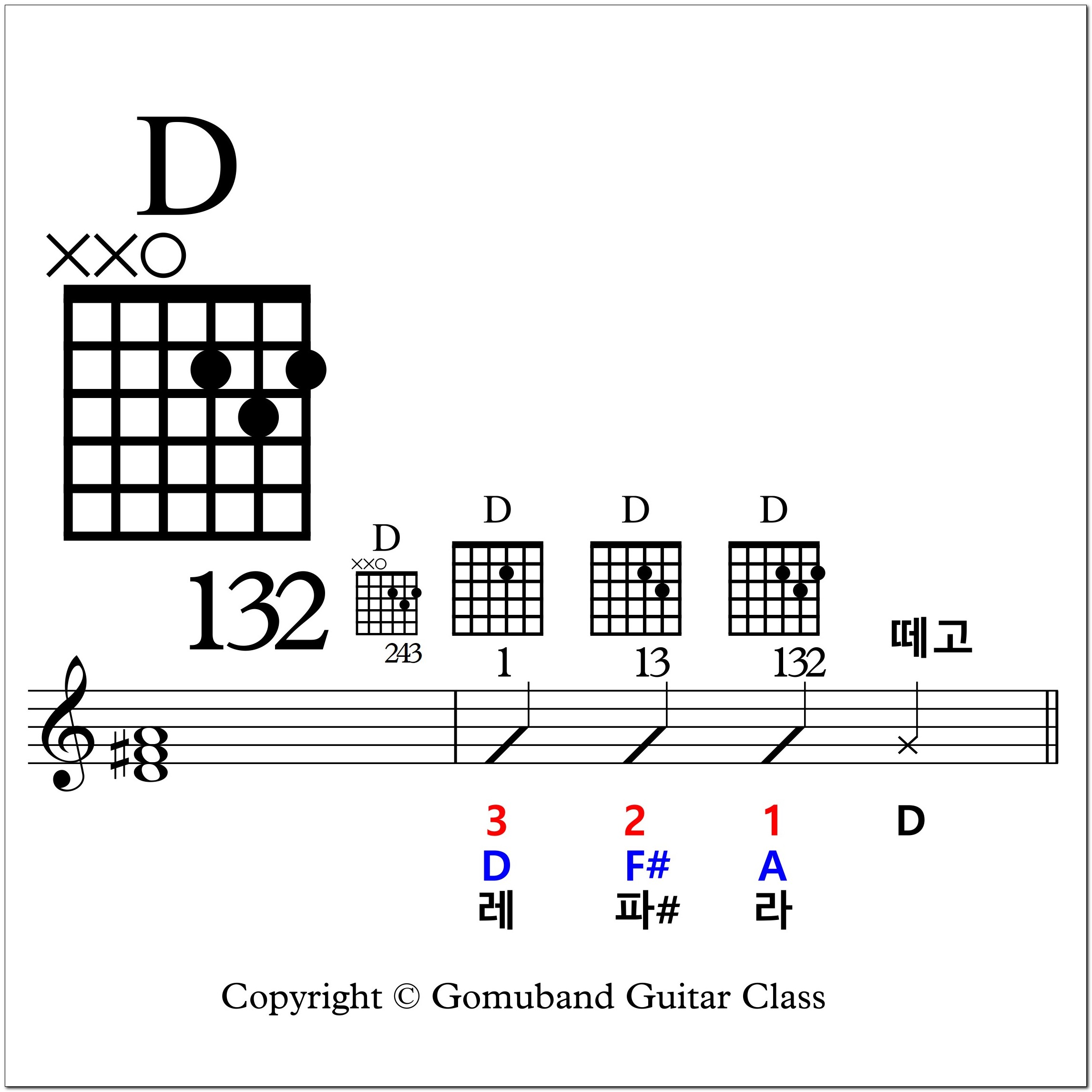 오늘은 기타의 D 코드를 연습하는 날입니다.