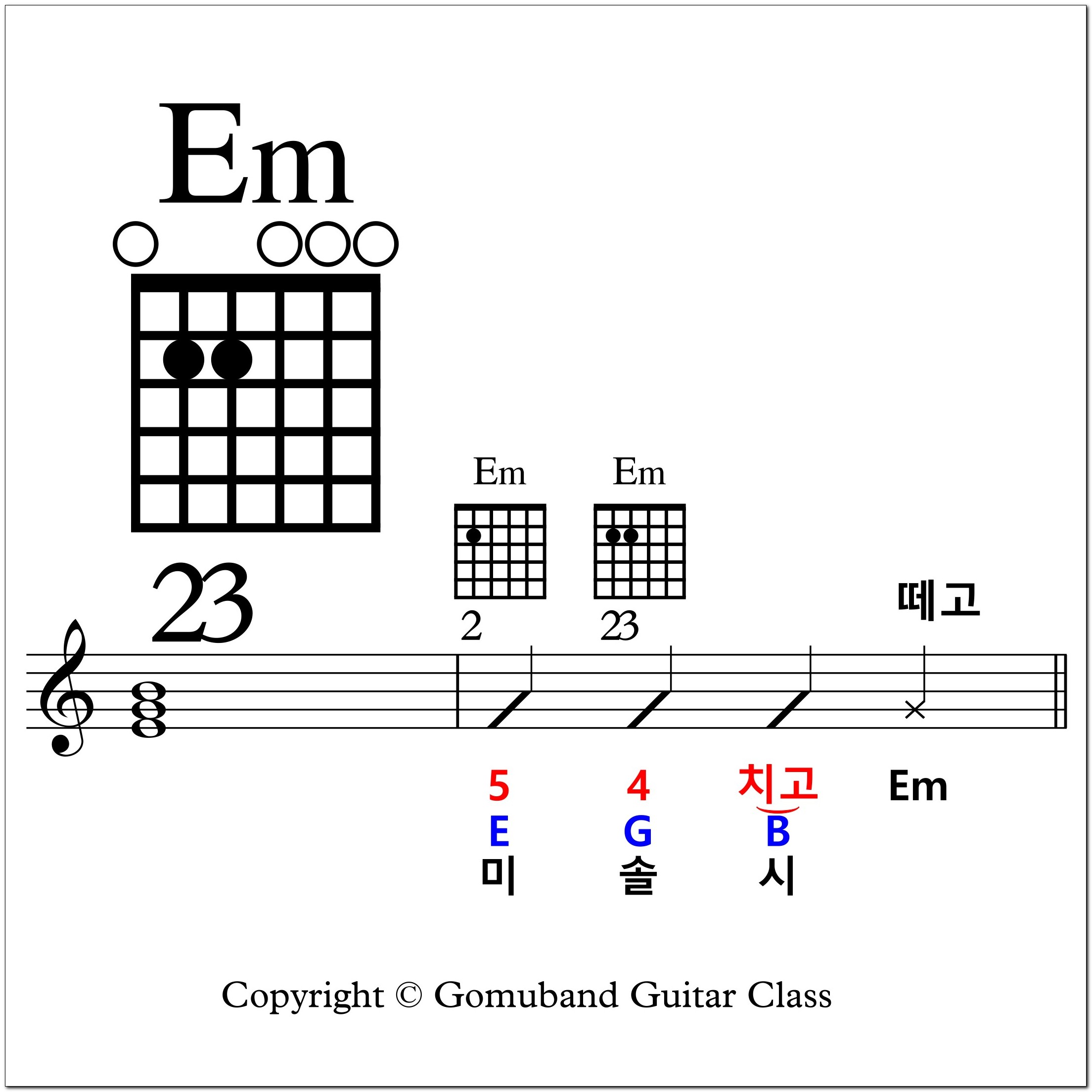 자! 이제 Em 코드가 완성되었습니다.