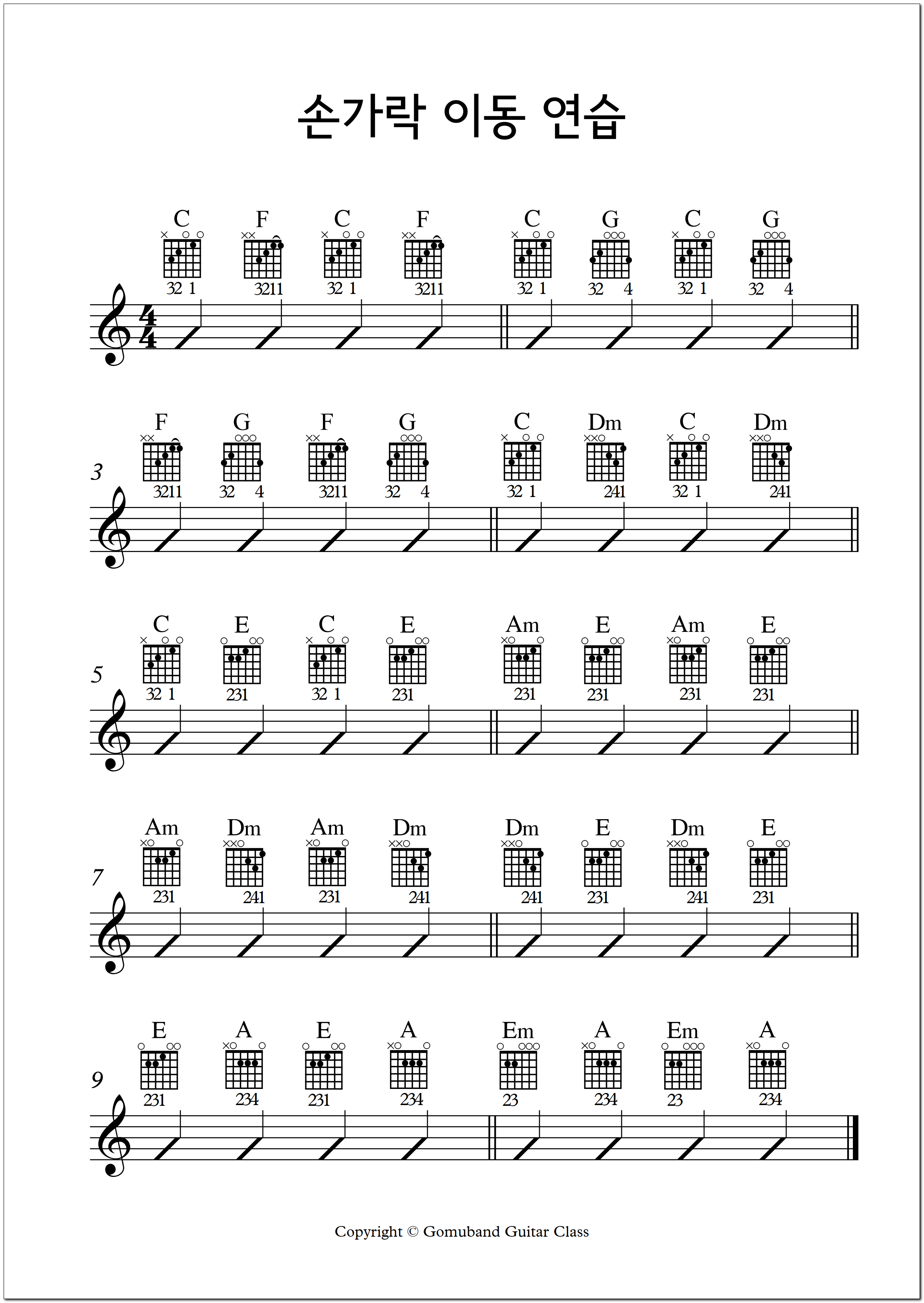 다음 글에서는 공통 손가락을 떼지 않고 코드를 바꾸는 연습을 하겠습니다.