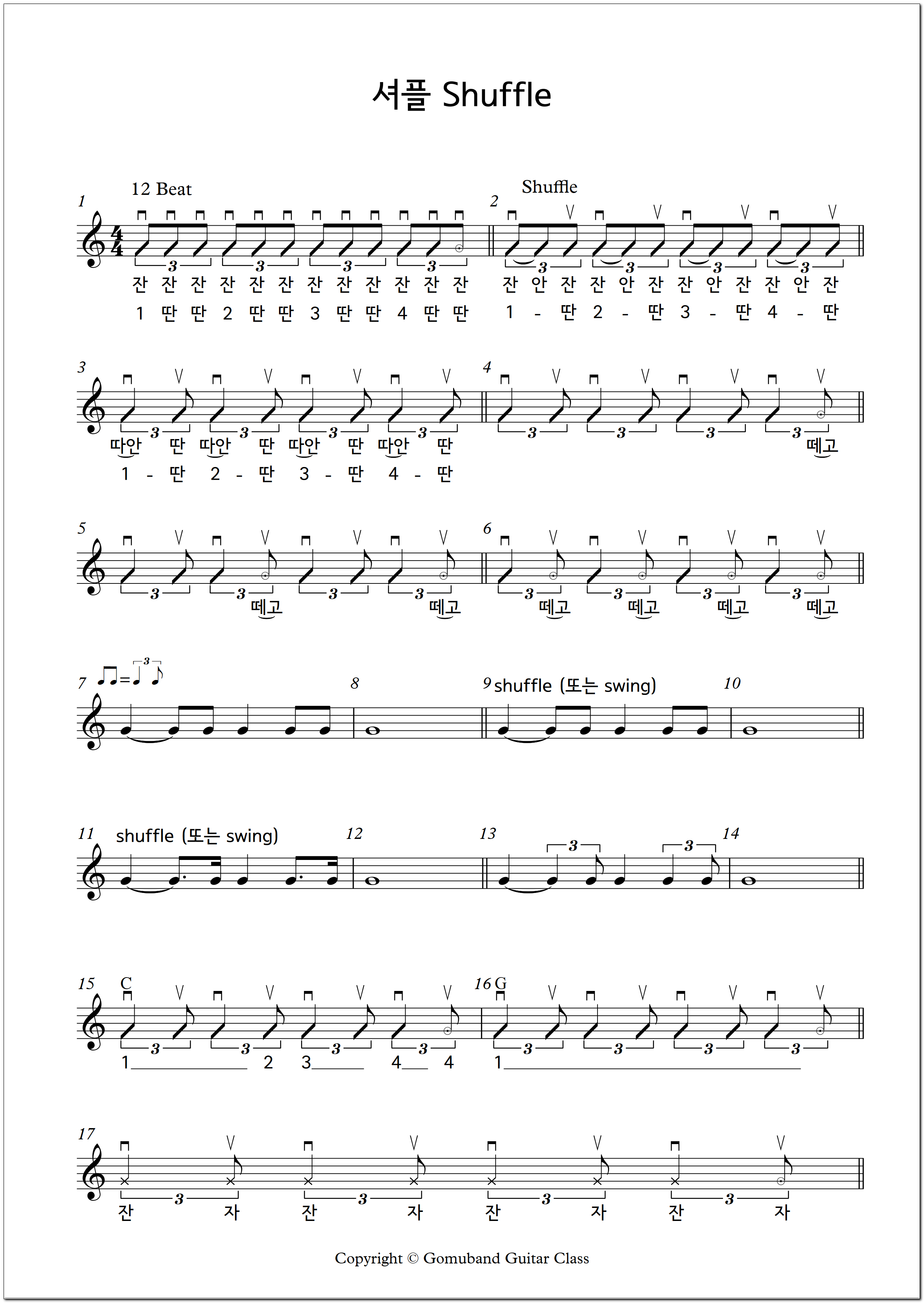 음악 시작할 때 'shuffle 또는 셔플', 'swing 또는 스윙'이라고 리듬 표시를 꼭 적어야 합니다.