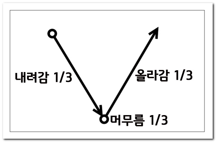 내려가면서 1/3+1/3의 시간을 보내는 게 아니라는 겁니다.