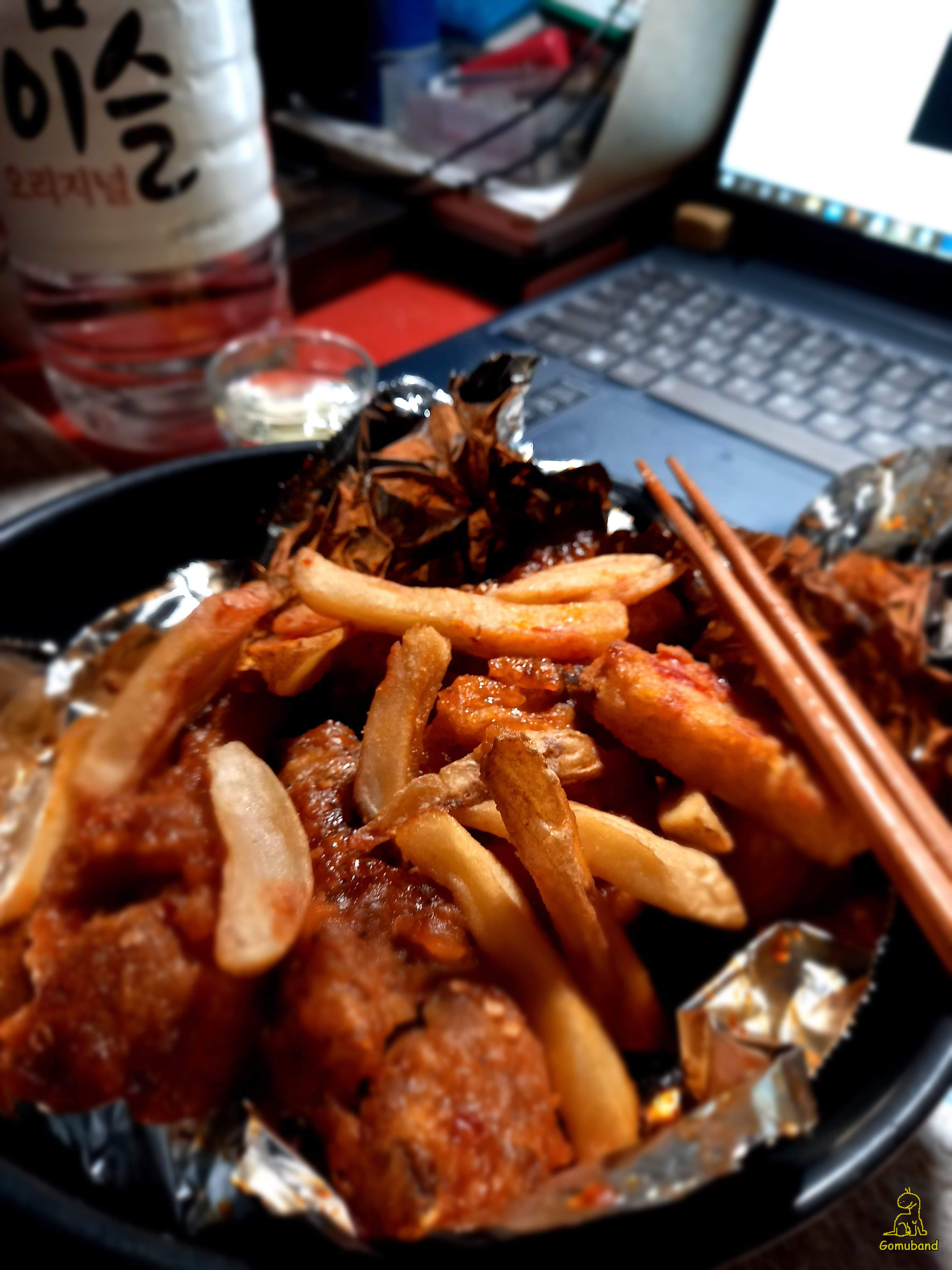 저녁엔 치킨과 감자튀김 먹고