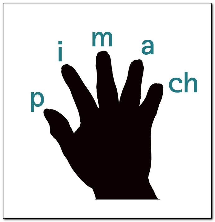 검지(i), 중지(m), 약지(a)로 3, 2, 1번줄을 칩니다.