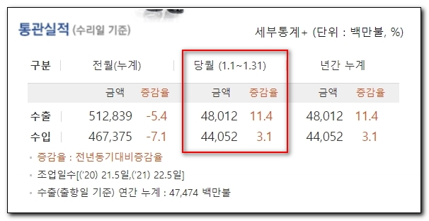 2월 1일에 발표하는 우리나라의 수출지표