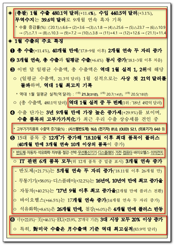다음은 산업통상자원부의 1월 수출입 동향 보도자료를 보겠습니다.