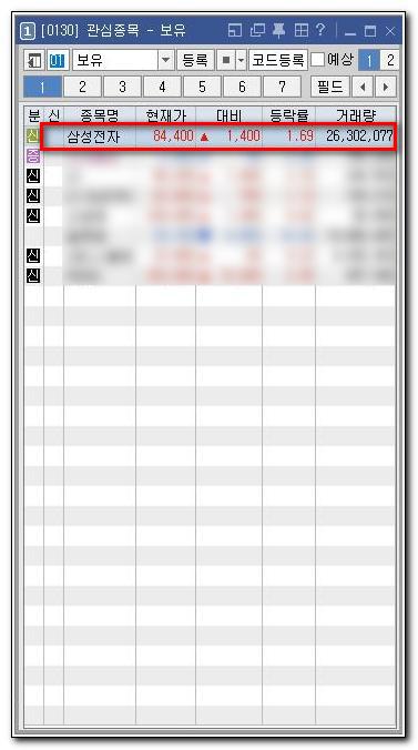 영웅문4 맨 위 툴바의 '관심종목'을 누르면 '관심종목' 창이 열립니다.