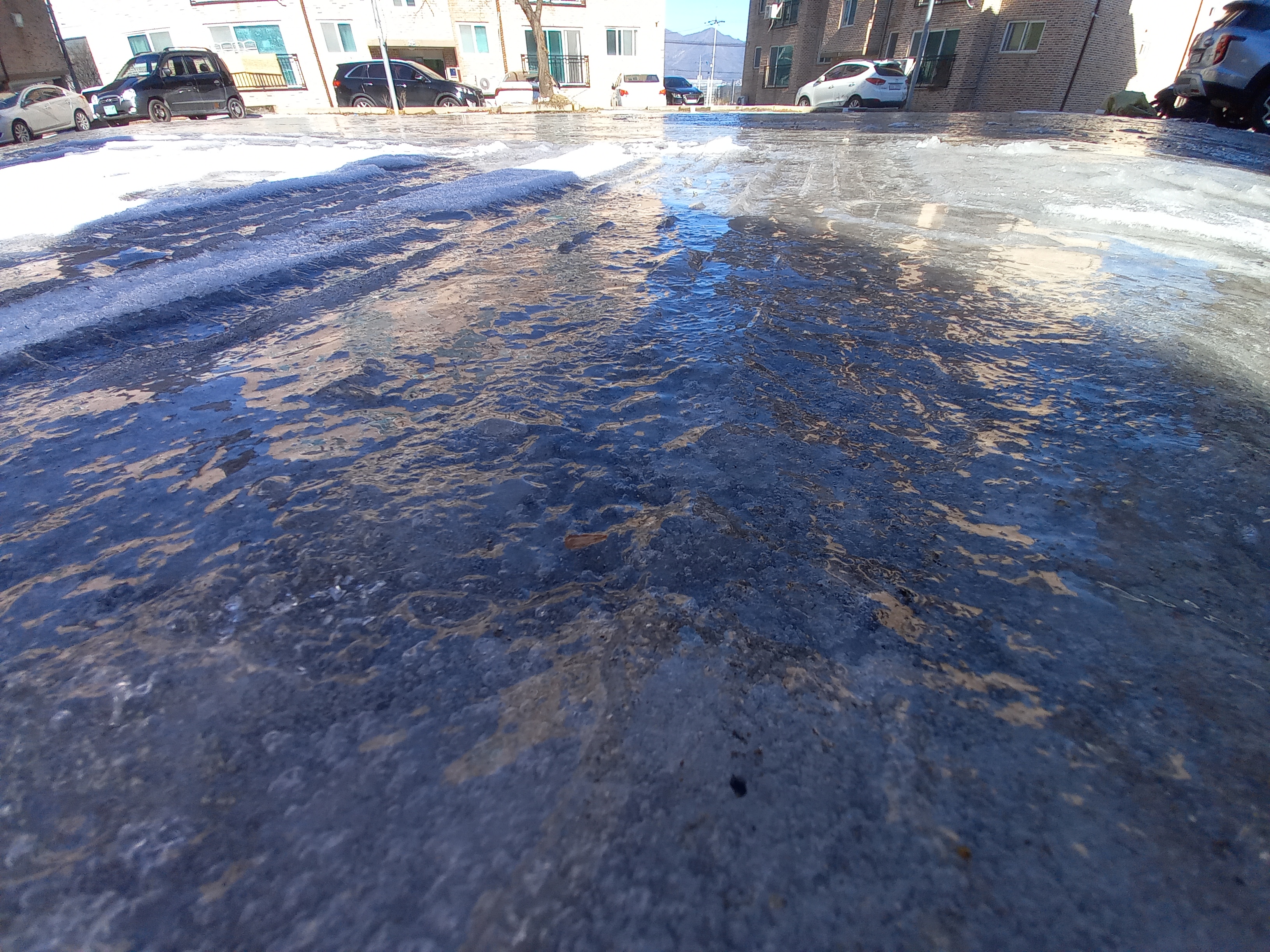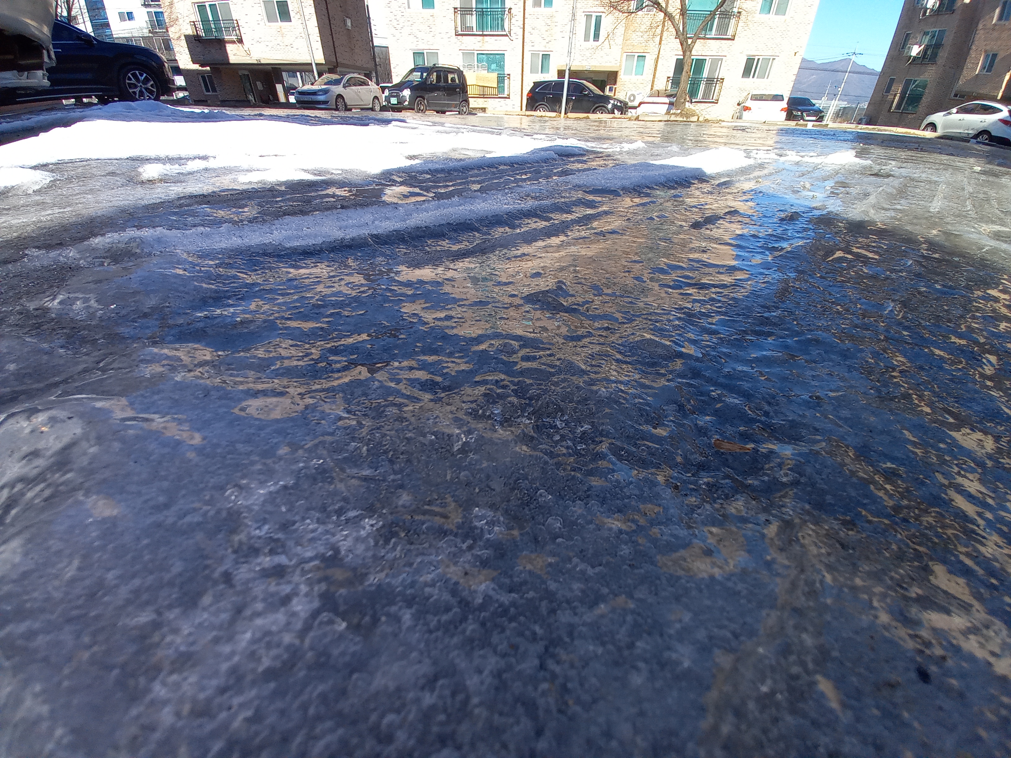 물이 꽁꽁 얼어있어서 마음이 아팠다.
