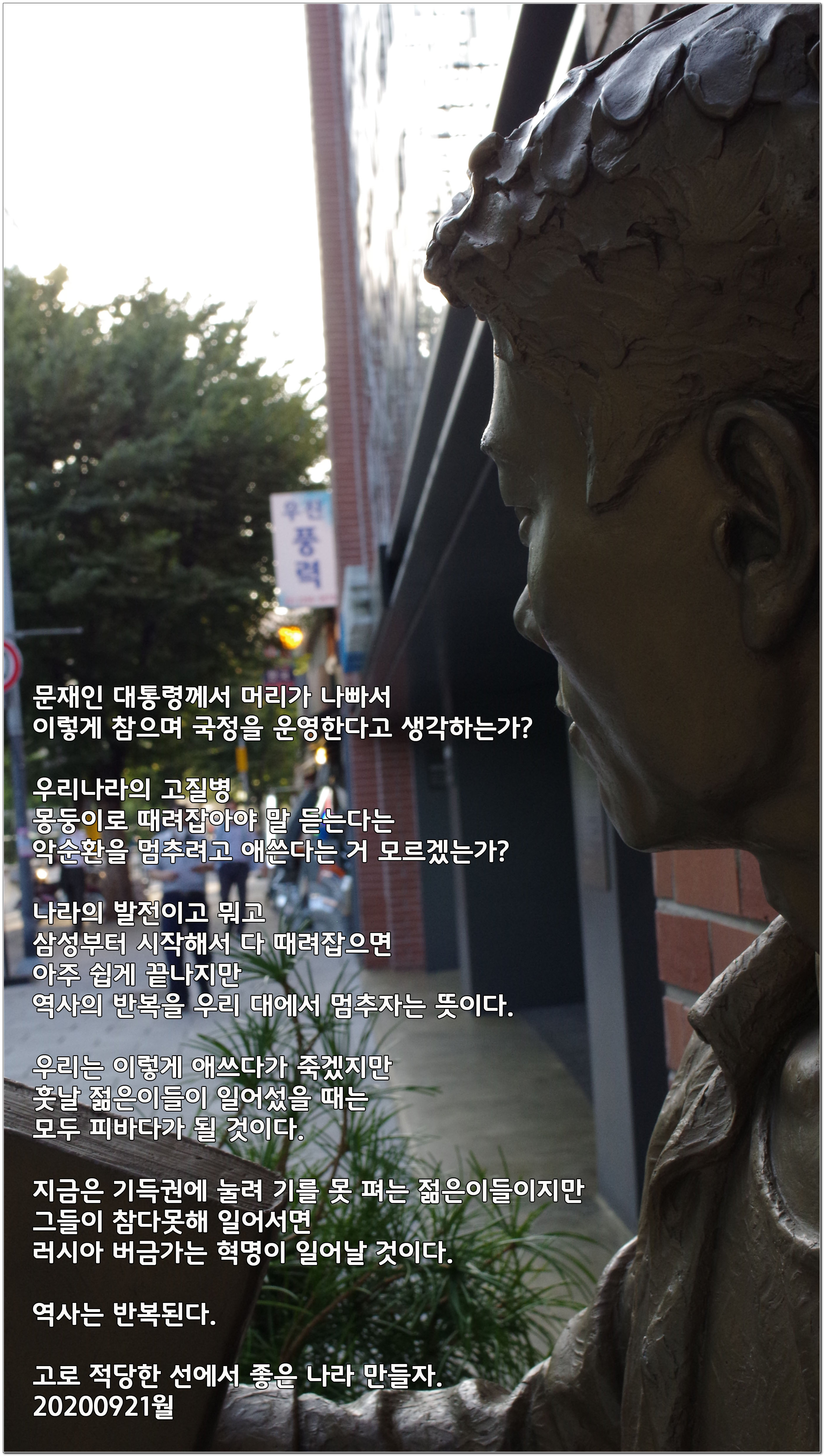 역사의 반복을 우리 대에서 멈추자는 뜻이다.